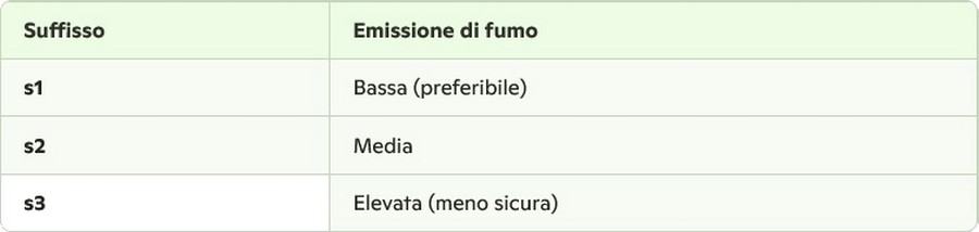 - Cfl-s1 → Buona reazione al fuoco, bassa emissione di fumo