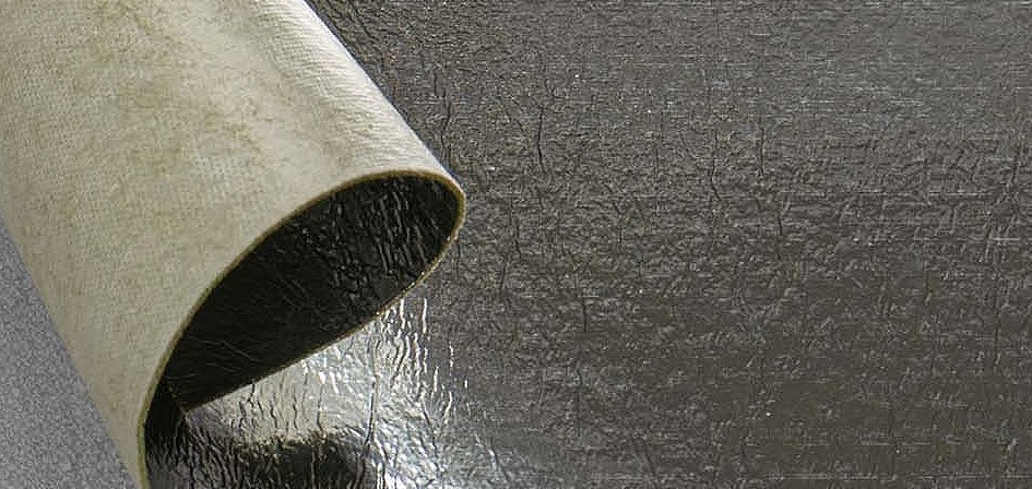 Materassino sottopavimento tipo Bfls1 MAT TOP C, composto da materiale viscoelastico termoconduttivo ad alta densità accoppiato a film superficiale in PET alluminato con funzione barriera vapore, idoneo per la posa flottante di pavimenti in laminato, parquet e rivestimenti rigidi.