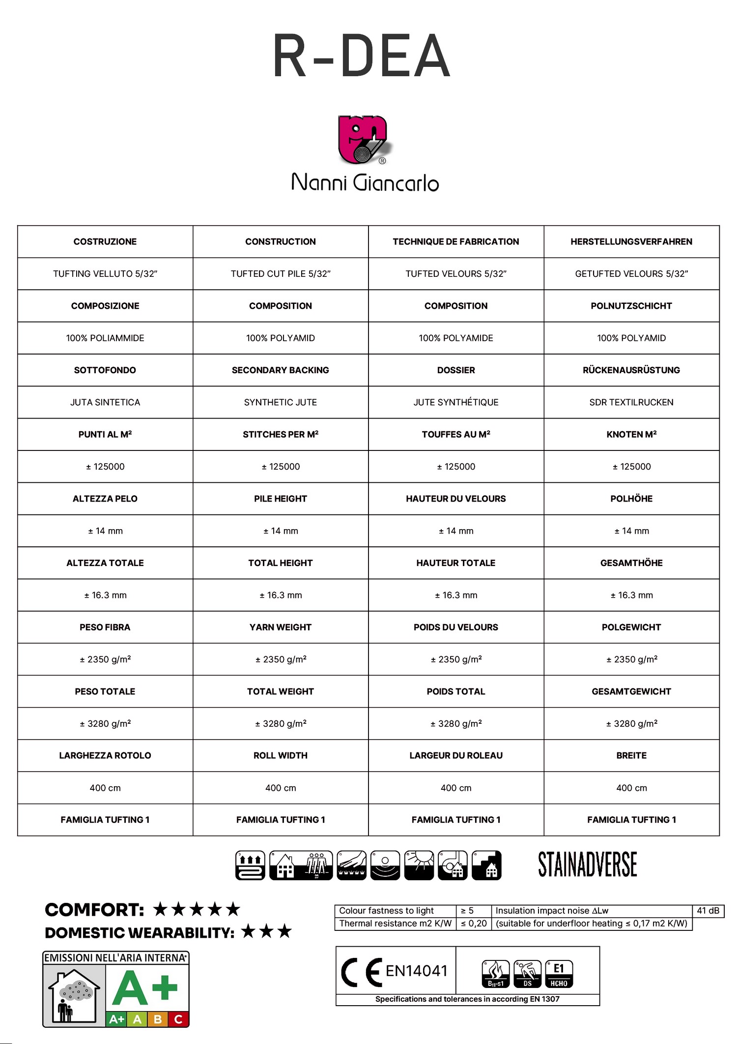 Moquette alta qualità Caratteristiche RDEA | Nanni Giancarlo